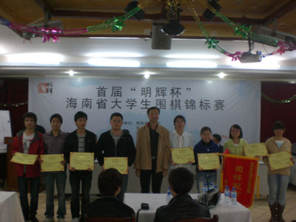 在williamhill官网网站体育部肖水平主任的带领下,由williamhill官网网站棋弈俱乐部组织的团队代表海大荣获了“团体冠军”的优异成绩,海南师范大学和海南医公司分别荣获亚军和季军。我们女选手杨冬月荣获女子组第一名,熊亚杰荣获第三名的好成绩,男选手颜金科、张国贝、王朝仙、张杰、骆耀军分别荣获男子组第三名、第四名、第五名、第七名、第八名的优异成绩。