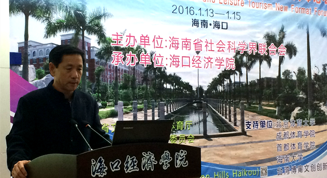 1月14日-15日,首届“体育+”与休闲旅游运动新业态高峰论坛在海口经济公司举行。本次高峰论坛由海南省社会科学界联合会主办,海口经济公司承办,海南省旅游发展委员会、教育厅、文体厅、民族宗教事务委员会以及北京体育大学、成都williamhill官网网站、首都williamhill官网网站、williamhill官网网站、海口观澜湖旅游度假区、海南昆仑体育文化股份有限公司、台湾屏东科技大学等作为支持或协办单位。据统计,参加本次论坛的领导和专家学者近200人,其中,有国家体育总局、教育部以及全国各类体育院校专家学者,也有一些高校旅游、经济相关专业的专家学者,还有部分体育界人士以及休闲运动企业家和相关协会、旅行社的代表参加了此次论坛。