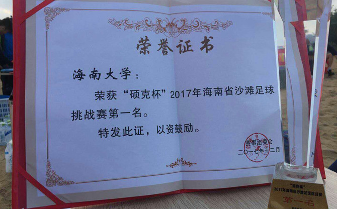 由海南省文体厅主办,海南省足协承办的“硕克杯”2017年海南省沙滩足球挑战赛,近日在海南省足协裕东青少年足球训练基地落下帷幕,williamhill官网网站男子足球队获得本次比赛冠军。