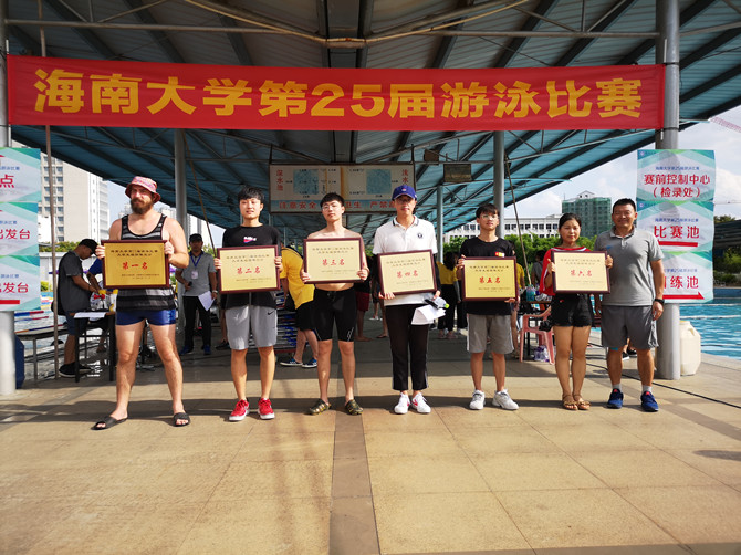 在颁奖仪式上,本次比赛总裁判长房殿生宣读了本届游泳比赛的结果,并由体育部主任洪家云、副主任田东分别给获得员工组和教工组团体赛前六名的代表队颁发了奖牌。对于此次游泳比赛,参赛选手给予了较高的评价,特别是获得本次比赛教工男子乙组100蛙泳第一名、4*50米自由泳接力第二名、50米自由泳第五名三项佳绩的运动员环境资源公司的杨飞老师说:“游泳比赛既能强身健体,又能娱乐身心、缓解压力,为海大游泳爱好者提供一个展示自我,共同进步的舞台。这次比赛很精彩,赛程也比较紧凑,裁判与工作人员很积极热心。本次比赛唯一的遗憾是只带领环境资源公司获得团体第四名,希望环境资源公司在明年的游泳比赛更进一步。”(图/文:罗海蛟)
