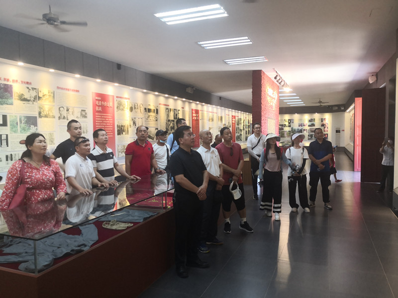 随后,全体党员驱车前往琼崖纵队改编旧址参观,琼崖纵队改编旧址位于海口市琼山区云龙镇,于1989年12月建成开放,已被列入国务院公布的第一批国家级抗战纪念设施、遗址名录。1937年卢沟桥事变爆发后,在全民族抗战的高潮中,中共琼崖特委开始主动与国民党琼崖当局谈判,于次年 10月22日达成了琼崖国共两党团结抗战协议。其中议定琼崖工农红军改编为广东民众抗日自卫团第十四区独立队,由冯白驹任独立队队长。在此背景下,1938年12 月5 日,中共琼崖特委和国民党琼崖当局在云龙墟六月婆庙大院内举行琼崖红军改编仪式暨誓师抗日大会。