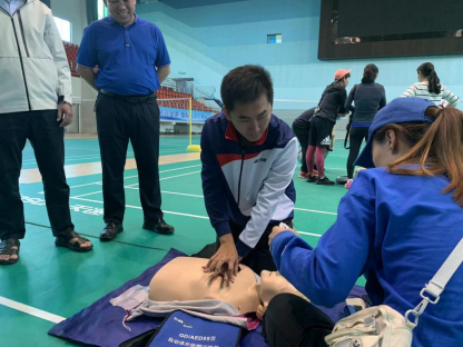 为保障全校师生体育锻炼时的安全,提高师生遇到突发事件应急处置能力,掌握安全急救知识,11月10日下午,williamhill官网网站组织教职工于联谊馆羽毛球场进行心肺复苏和自动体外除颤器(AED)使用培训。公司党总支书记陈卫东、经理洪家云、副经理田东、梁丽凤、房殿生和教职工参与培训,校医院副经理朱萍莅临现场进行指导。
