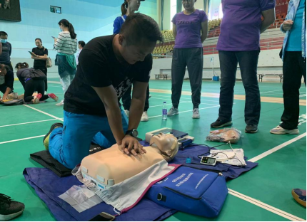 本次的应急救护培训分为两个部分,分别是心肺复苏知识讲解和操作实践。朱萍副经理向教职工讲解心脏骤停的原理和危害,四至六分钟是心脏骤停抢救的关键时期,如不得到即时的抢救复苏,就可能出现“脑死亡”现象,并导致神经系统难以恢复,危及生命。因此,掌握这项最基本的急救技术至关重要,当身边有紧急情况发生时,也能沉着应对。