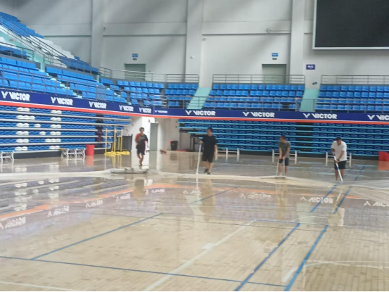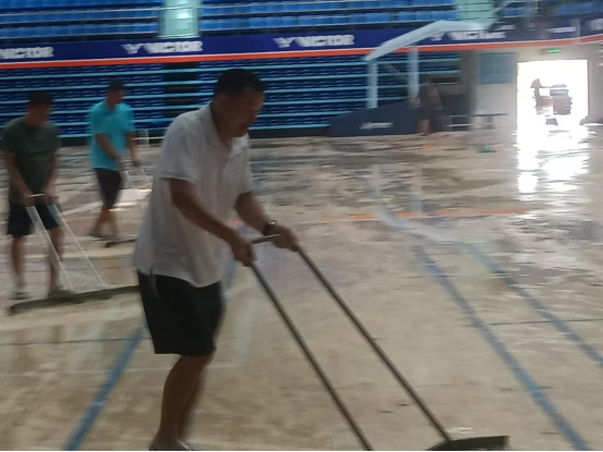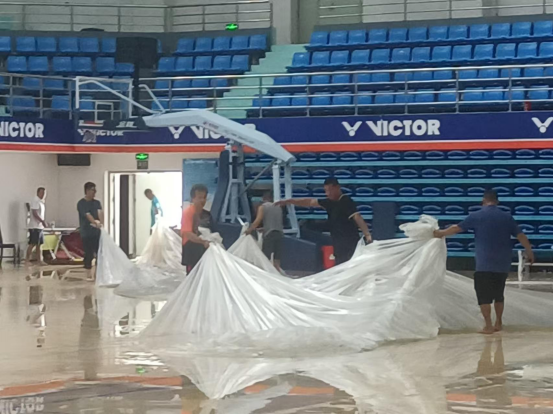 台风来临之前,williamhill官网网站积极行动,全力做好各项防护工作。在陈卫东书记、洪家云经理及班子成员的带领下,各科室迅速落实台风防范各项措施。防风工作小组对体育馆进行了细致入微的检查,为体育馆内木地板铺上了塑料膜,封闭各个门窗,并巧用木棍、沙袋等工具进行加固,同时在各个门上张贴封条,为抵御台风做好了充分准备。
