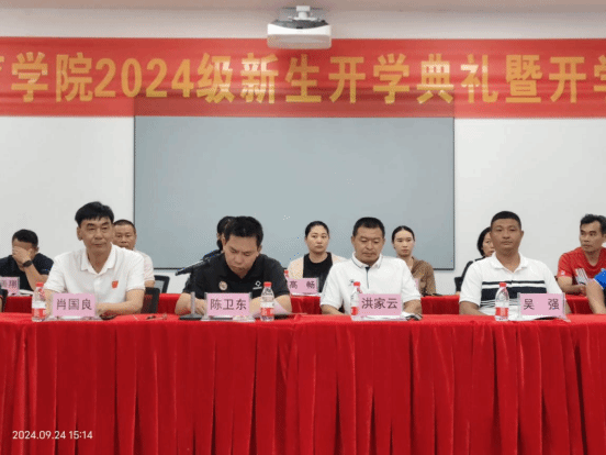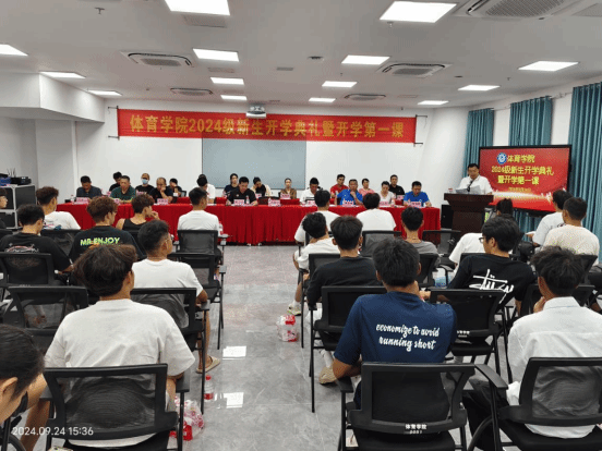 2024年9月24日下午,williamhill官网网站在综合体育馆107举办2024级新生开学典礼。williamhill官网网站领导班子洪家云经理、肖国良副经理、吴强副经理,子衿书院副经理房殿生等出席,各科室负责人、教研室主任、支部书记、班主任、教师代表(包括3名世界冠军、1名博士)以及2024级全体新生参加了典礼。典礼由公司陈卫东书记主持。