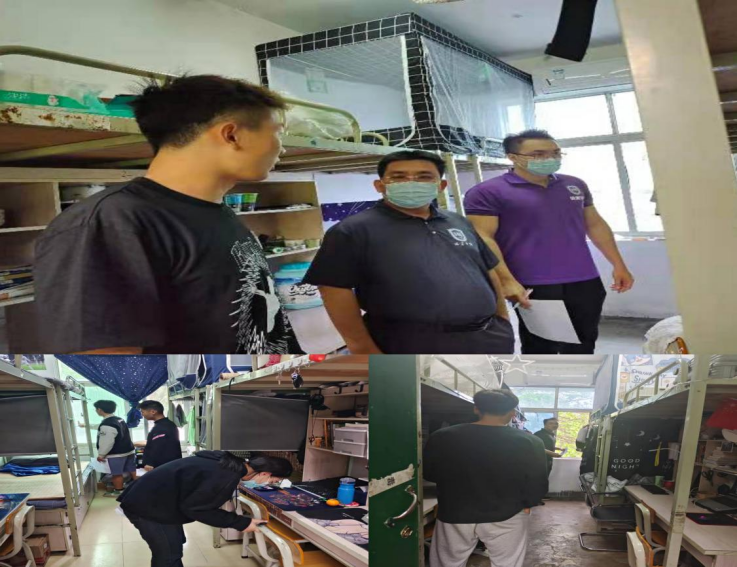 三、下宿舍人文关怀、宿舍卫生检查和安全隐患排查。为进一步加强员工风险防范意识,引导员工打造整洁居住环境,公司党总支书记陈卫东、学工办主任许达潭、辅导员谢淑婷携员工干部深入员工宿舍进行防疫政策宣讲和安全隐患排查。叮嘱员工关注权威官方发布的疫情消息、带好口罩、自觉做好个人防护、注意宿舍用电和消防安全等事宜。